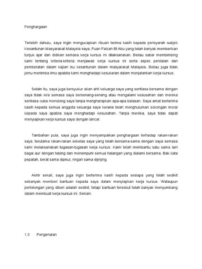 Contoh Penghargaan Kerja Kursus Bahasa Melayu